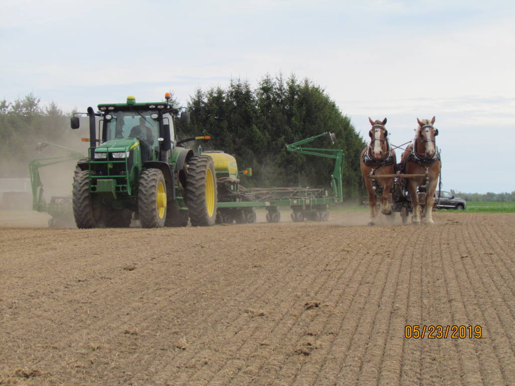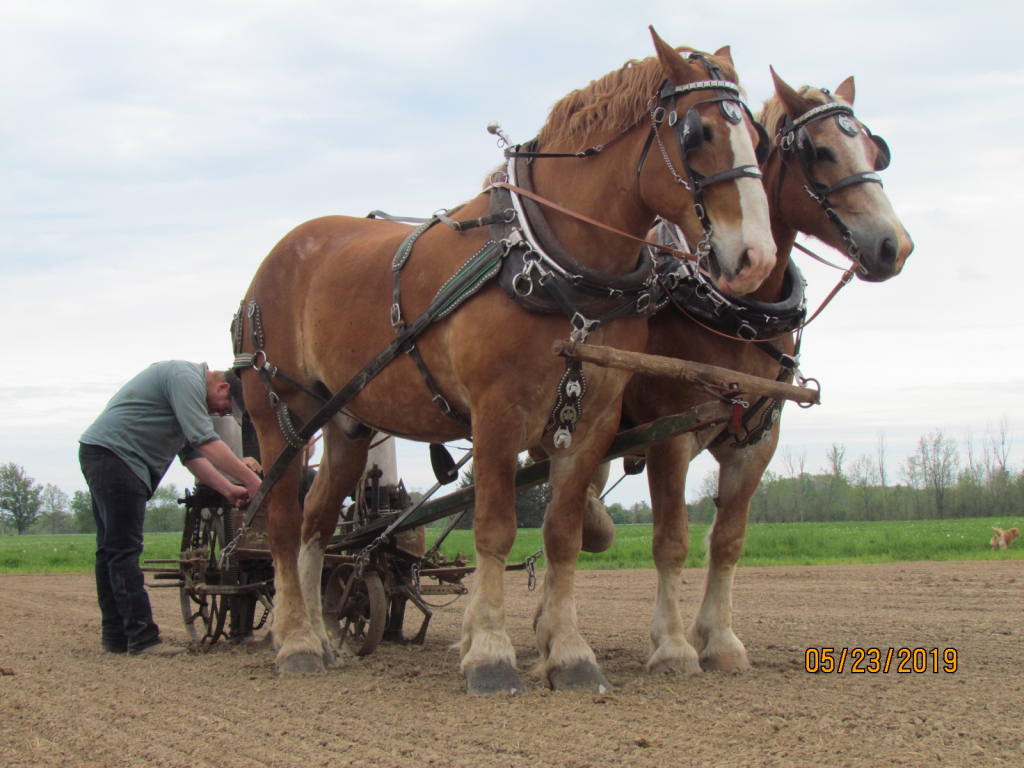 | Planting Corn | | Ray and Cassie pulling our horse drawn hearse, 2020 | | Ray and Cassie pulling our horse drawn hearse, 2020 |