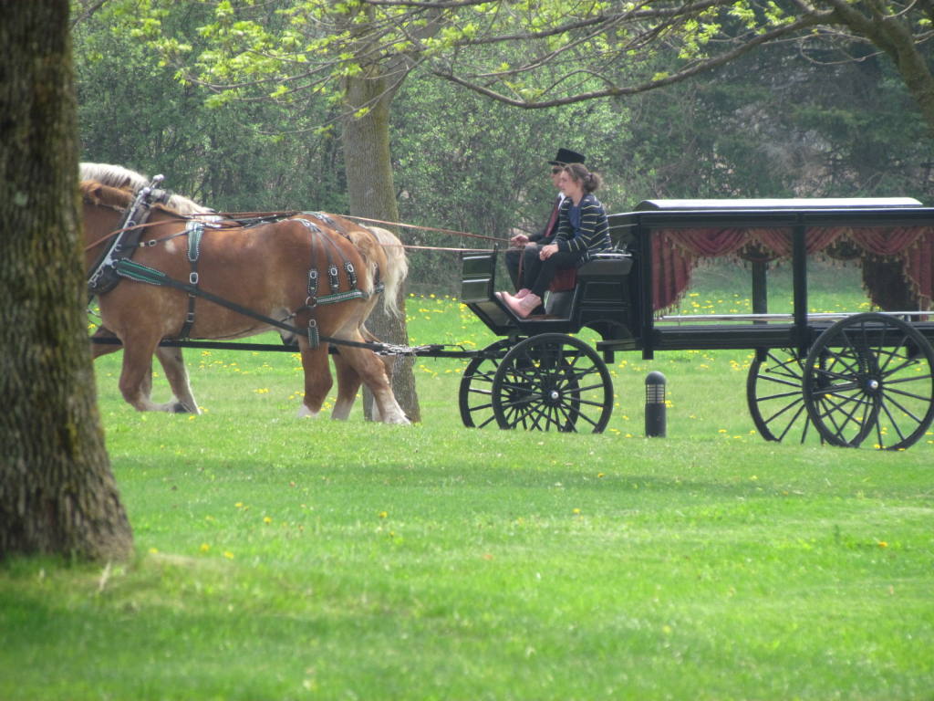 Spreading manure | | Our vis-a-vis sleigh | | We offer funerals throughout Ontario |