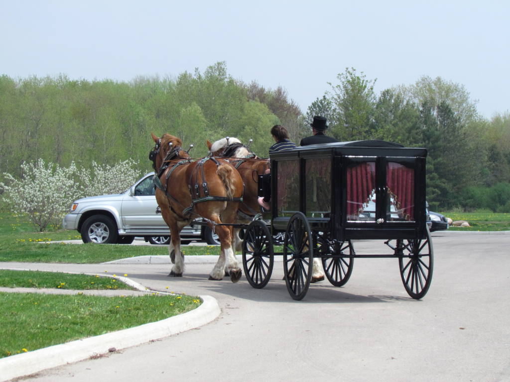 We offer a horse drawn glass sided coach, for that special send off for a special person. We have worked with many funeral homes and families throughout southern Ontario. |